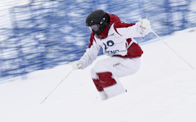 2025年3月11日,黎睿霖在国际雪联自由式滑雪世界杯(利维尼奥站)女子雪上技巧资格赛比赛后。新华社发